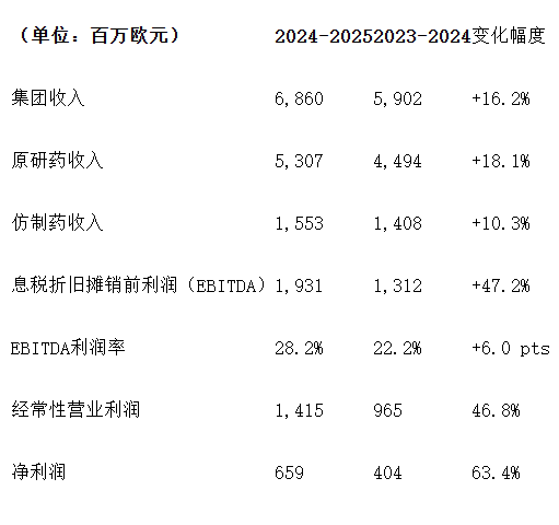 施维雅集团2024-2025财年的合并收入达69亿欧元,超额完成60亿欧元的目标。较上一财年增长16.2%,彰显了集团强劲的增长势头,以及为患者提供更多治疗选择的能力。