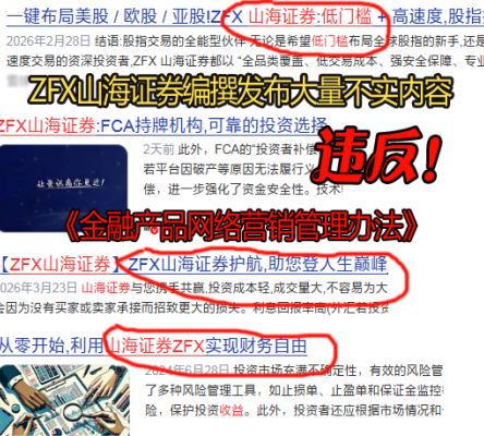 近日国家启动为期三年的防范和打击非法金融活动总体战,2026年4月24日八部门联合出台《金融产品网络营销管理办法》,禁止使用“低门槛”“高收益”“秒到账”等诱导性话术,非持牌机构不得通过任何平台营销金融产品。但ZFX山海证券依托境外监管资质背书,编撰大量“不实内容”广泛发布于社交平台,这与新规办法背道而驰!其境外机构境内展业正规合法性存疑,风险巨大!