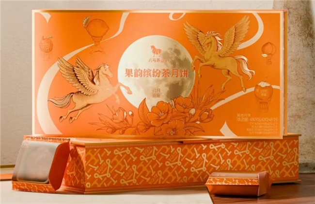 2025年中秋季,八马再度携手柏星龙推出“茶香月饼”系列,将“茶与月”的文化意境融合为一场充满想象力的节日盛宴。柏星龙通过“天马”形象串联果韵缤纷、福马双辉、茗珠耀月等六款礼盒,构建出一个浪漫奇幻的中秋故事世界。外盒视觉则提炼八马首字母“BM”与品牌创立年份“1736”,以现代符号语言重塑品牌资产,让传统节礼焕发时尚光彩。与此同时,不同形态的容器承载不同心意,让“送茶”成为一种更具情感温度的表达方式。