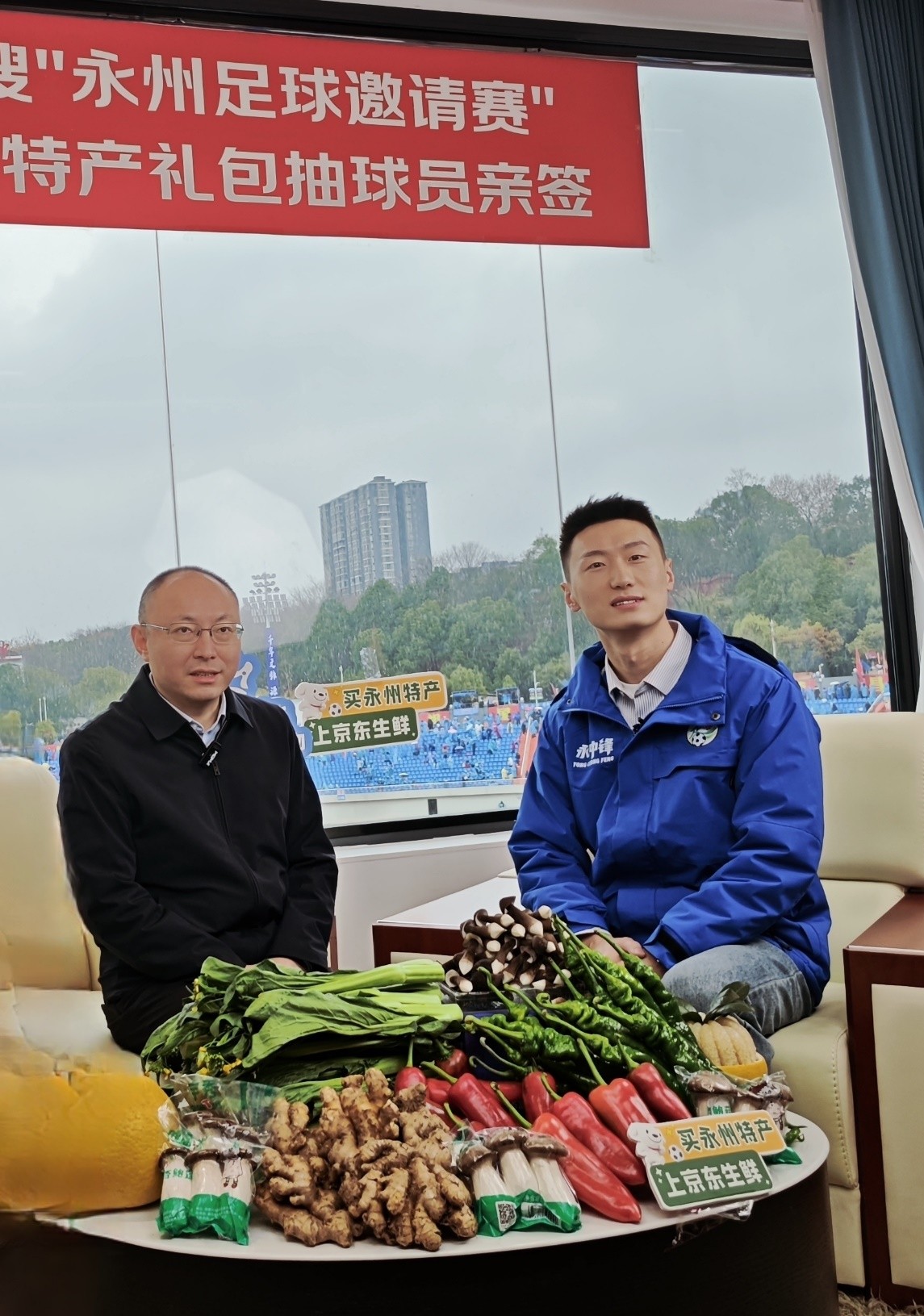 1月20日,CMG群众足球邀请赛迎来黑龙江哈尔滨队与湖南永州队的精彩对决。作为赛事承办地,东道主永州市人民政府分管农业的副市长李钦与“湘超冠军”永州队门将唐嘉年做客京东生鲜直播间,欣赏精彩比赛的同时,与全国网友分享永州风味,讲述冠军之城背后的故事。
