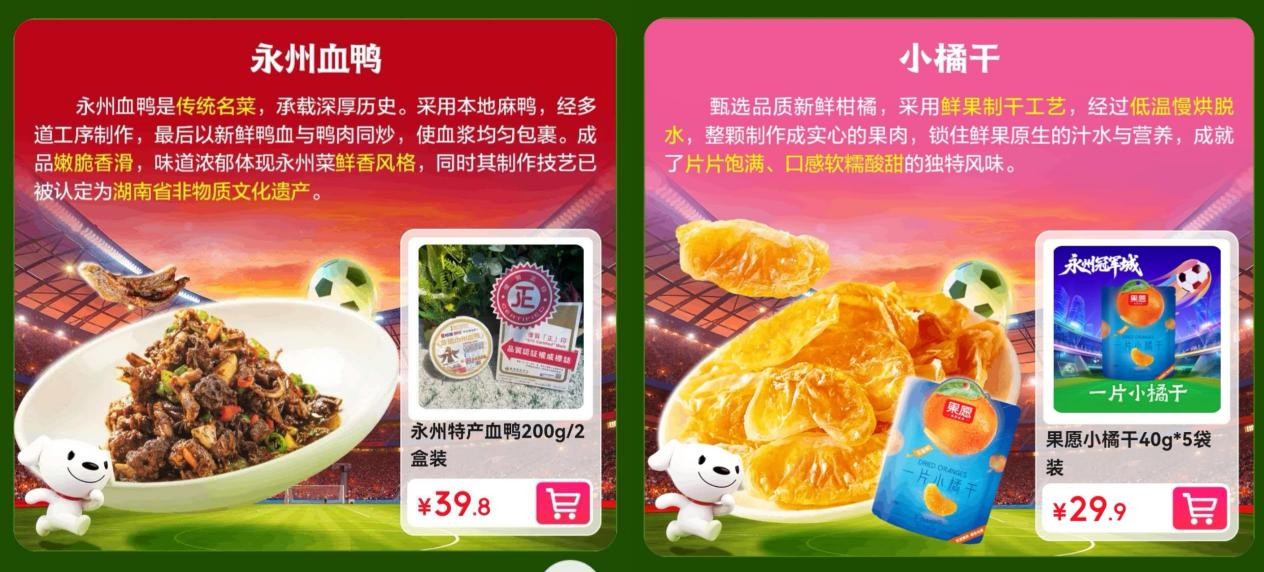 一场足球赛,不仅让永州这座城市被更多人了解,也让永州的农民得到了切实的实惠。通过打造“观赛+购物”的沉浸式体验,京东生鲜携手永州市政府打造出政企合作的新模式,为“永湘甄选”这一区域公共品牌提供了更多的支持,推动其成为永州特色农产品品牌化、市场化输出的稳定渠道。另一方面,通过京东生鲜超级供应链与数字化能力,永州的江永香柚、东安鸡等优质产品能够以更快的速度、更新的鲜度抵达全国消费者的餐桌。