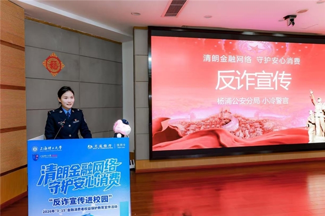 活动中,上海市公安局杨浦分局的“00后”民警小冷警官带来了一场硬核反诈讲座。他以网络热梗和幽默语言,将反诈知识转化为年轻人易记的“警”句,交行信用卡中心也借此机会,向在场学生传递了金融安全的重要性。小冷警官现场深度拆解了网恋交友诈骗、快递理赔诈骗等高发骗局,精准剖析了陷阱要害,交行信用卡中心鼓励学生们将这些要点融入日常,提升自我防护能力。这场干货满满的反诈课堂在上理工开讲,让在场师生直呼受益。