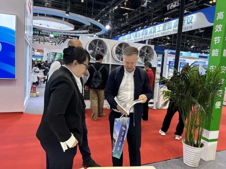 在信然展台的国际洽谈区,英语、德语、阿拉伯语等多语种交流此起彼伏。来自中东、东南亚、欧洲及南美的采购商对信然展出的定制化磁悬浮压缩系统解决方案表现出浓厚兴趣。一位来自阿联酋的HVAC系统集成商在详细了解XR-1000型高效变频磁悬浮中央空调后表示:“信然产品的能效数据与欧洲主流品牌相当,但模块化设计和维护便捷性更具优势,非常适合我们正在推进的迪拜大型商业综合体项目。”据统计,展会首日信然团队共接待独立国外客户达97位,现场达成意向订单超2000万元,其中大型工业厂房和大数据中心制冷机组成为询单热点。
