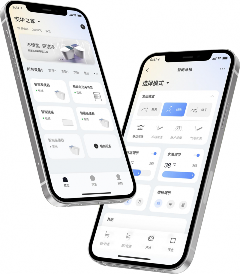 NFC智联功能:手机轻碰即可进入APP,自定义水温、座温、洗护模式,个性化体验一触即达。