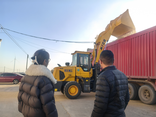 (图为颜女士为咨询顾问小孙介绍粮食加工基地)