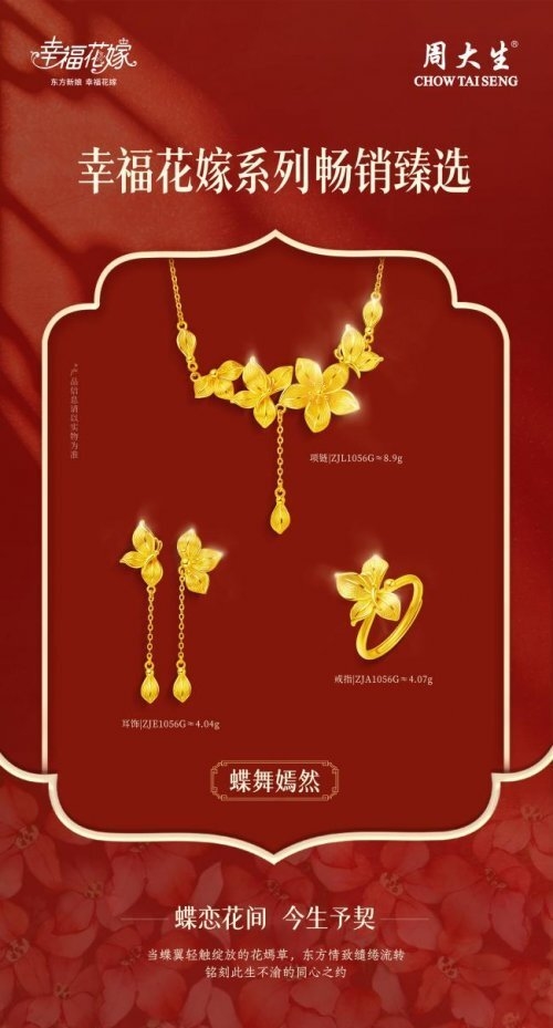 新年伊始,亦是爱情开花结果的美好时节。周大生幸福花嫁系列以爱为契,为即将步入婚姻殿堂的新人献上祝福。花嫣草、幸福花嫁、蝶舞嫣然等产品将自然花卉的灵动与爱情的纯粹完美融合,以美好的寓意和精湛的工艺,成为新人们表达爱意、许下承诺的理想选择,让爱情在浪漫中绽放光彩。