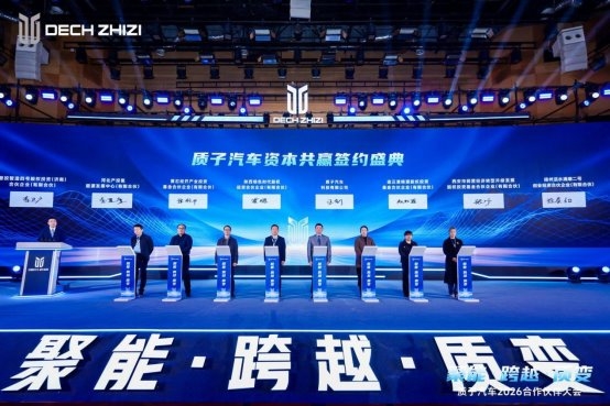 大会现场,质子汽车与多家知名投资机构举行了“资本共赢签约盛典”,并与五家银行签署了2026年度银企战略合作授信协议。