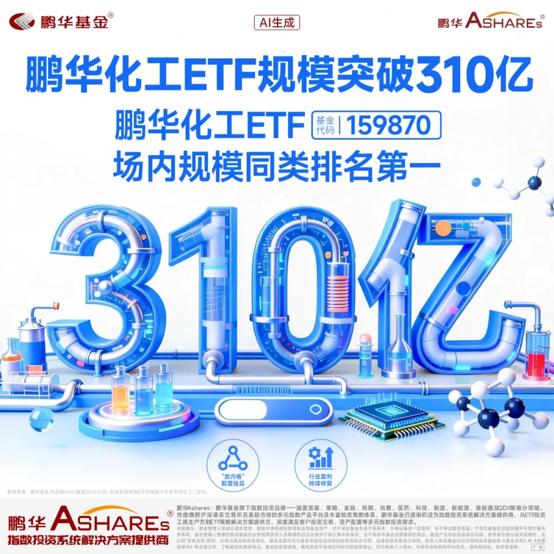 2026开年以来,资金持续涌入化工板块。同花顺iFinD数据统计显示,截至1月26日,鹏华化工ETF(159870)连续18日获资金净申购,规模一举突破310亿元。