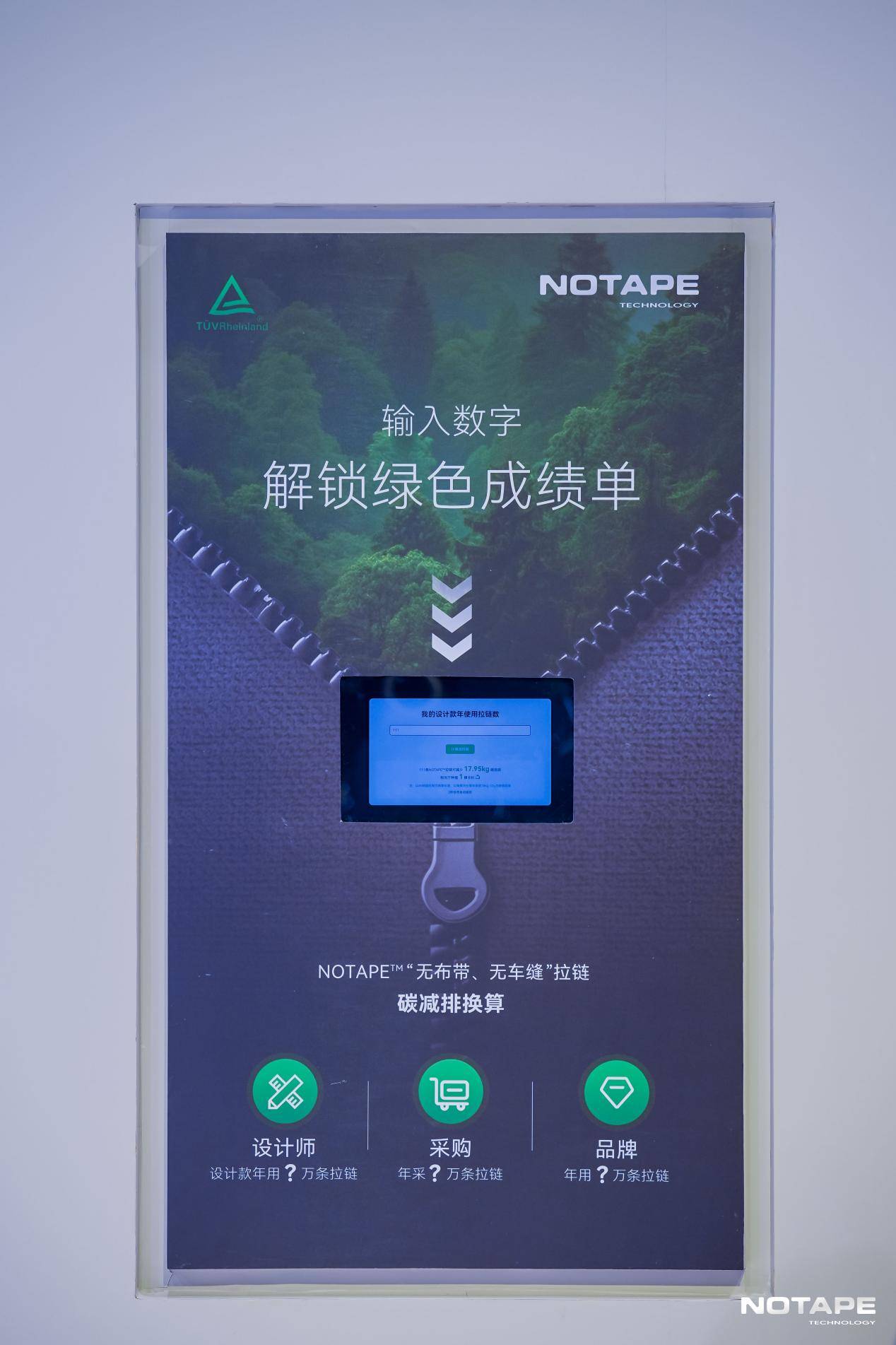 经全球领先的检测认证机构TüV认证,与传统有布带拉链相比,NOTAPE?无布带拉链碳足迹降低了19.4%至26.6%。这不仅是一个抽象的品牌承诺,更是贯穿产品全生命周期的环境绩效数据。