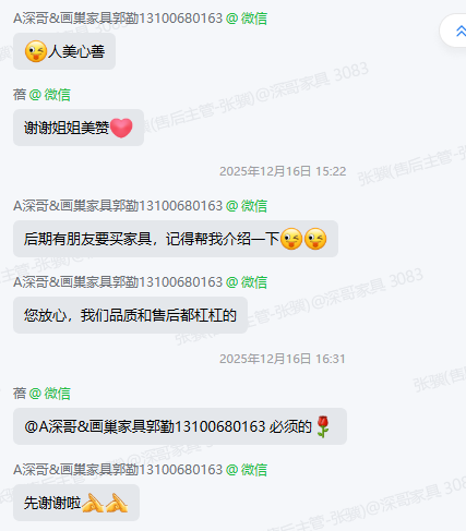口碑的积累,也让深哥成为设计师圈层的“优选伙伴”。不少设计师在接受采访时提到,推荐深哥家具给客户,一是因为品质稳定,用个十年八年不出问题;二是因为售后省心,万一真有点什么状况,品牌比他们还上心,不用夹在客户和厂家之间两头受气。