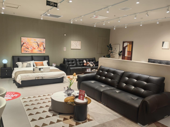 今年深哥家具在产品端继续加码。新发布的沙发系列,内部结构做了加厚处理,框架更扎实,坐垫支撑性更好;独有的聚氨酯覆面头层牛皮企业标准,比国标更严,耐磨、耐汗、耐黄变都经过反复测试。环保方面,甲醛、苯、TVOC等有害物质限量均远低于国标,真正做到即买即用、无需散味。
