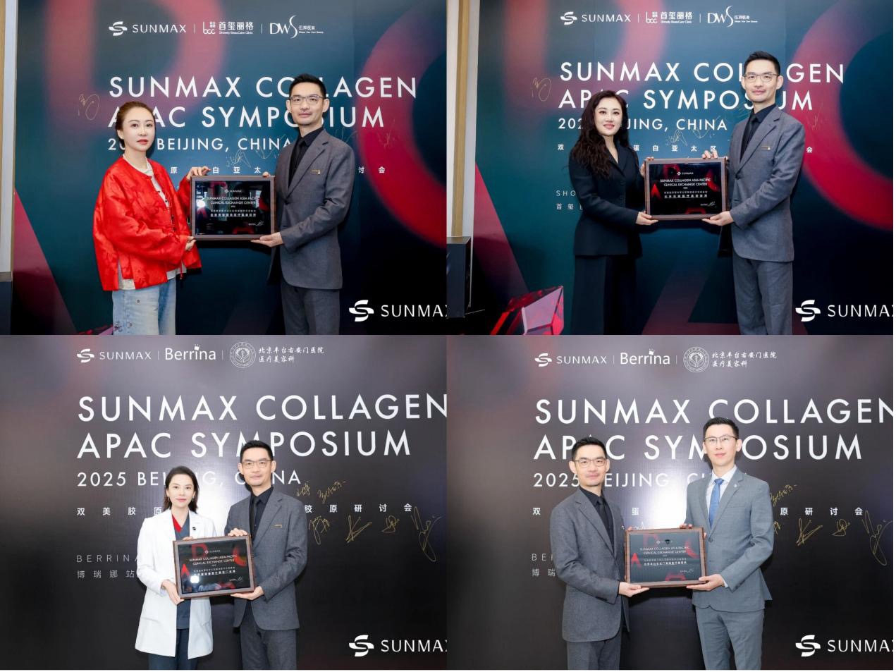 为感谢四家机构所提供的卓越临床交流平台及推动跨国技术合作方面所做出的突出贡献,双美总经理林明毅特向北京首玺丽格医疗美容诊所、北京伍珅医疗美容诊所、北京博瑞娜医疗美容门诊部、北京丰台右安门医院颁发“双美胶原蛋白亚太区临床技术交流基地”奖章 。感谢他们对于双美的支持以及对行业的贡献,也祝福他们未来能继续丰富胶原蛋白临床应用和蓬勃发展。