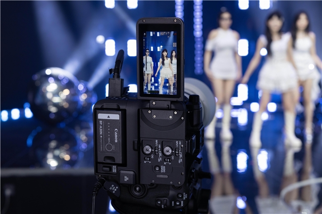 佳能 EOS C80 搭载6K全画幅背照堆栈式 CMOS感应器,搭配RF70-200mm F2.8 L IS USM Z长焦变焦镜头,能拍摄出浅景深、背景虚化优美的高品质影像。在时拍传媒以灯光棚为主的直播环境中,该设备可精准还原服饰原色与自然清透的人物肤色,让主播呈现出兼具真实感与质感的“明星感”气色。时拍传媒技术总监梁树根高度认可:“佳能的色彩科学很能打。Canon 709模式色彩直出,拍出来的色彩还原很真实、稳定,在不同光线下都能保证肤色自然好看,这对于我们唱跳主播的呈现至关重要。”