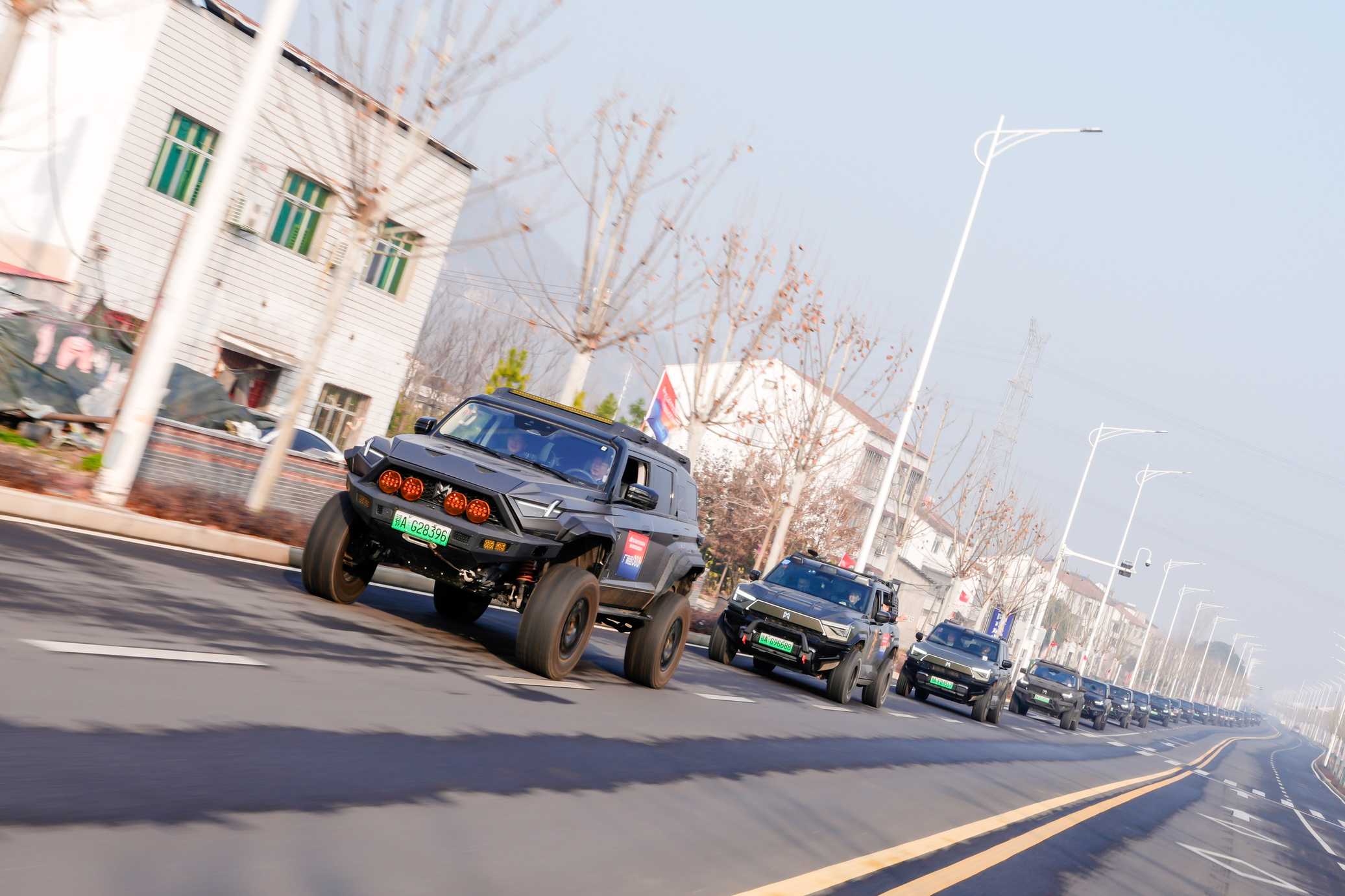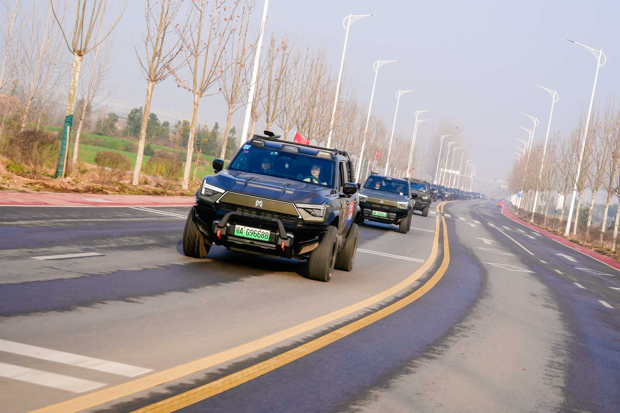 随着发车指令响起,百台“越野猛兽”们如钢铁洪流般浩荡启程。车队穿越七里河路,驶过汉江路与中原路的都市繁华,经襄江大道一览新城气象,再通过壮观的鱼梁洲隧道横跨汉江。最终,车队沿南山路、蔡洲路、苏岭路蜿蜒行进,气势如虹地抵达趣味越野体验活动现场。