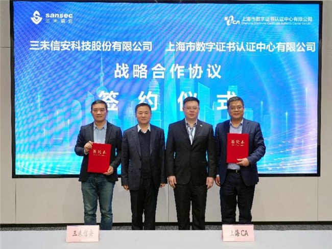12月23日,三未信安与上海市数字证书认证中心有限公司(上海CA)在上海举行战略签约仪式。