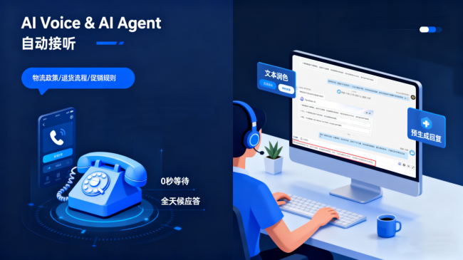 AI Voice & AI Agent:自动接听电话、智能回复常见问题。无论是查询物流政策、退货流程还是促销规则,AI都能提供0秒等待、全天候的准确应答,释放巨大咨询压力。
