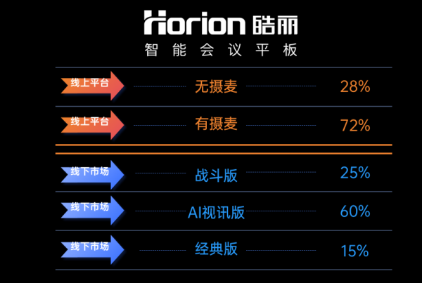 以下将从会议平板销量第一的品牌-皓丽的产品线布局来进一步解读会议平板市场线上、线下量价分化的特点: