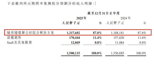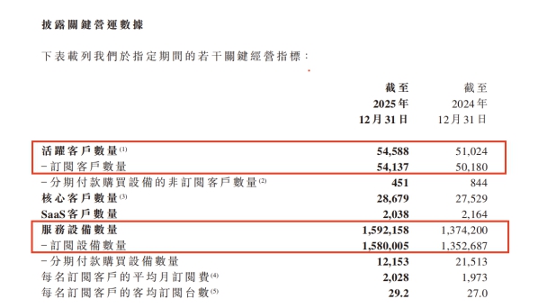 从业务结构看,核心的“随用随还”办公IT综合解决方案收入达13.18亿元,同比增长10.9%,占总营收比重87.8%,继续保持主导地位。截至2025年末,活跃客户数量达54,588家,在服务设备数突破159万台,同比增长15.9%。其中,订阅设备数量为1,580,005台,同比增长16.8%,表明订阅模式的吸引力持续增强。