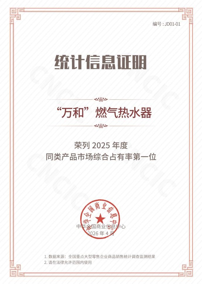 统计结果显示,广东万和新电气股份有限公司旗下的“万和”燃气热水器荣列2025年度同类产品市场综合占有率榜首,这已经是“万和”燃气热水器连续22年收获这一桂冠,充分彰显了其在燃气具行业牢不可破的领军地位,同时也印证了以“可靠性”为核心的差异化竞争战略的成功。