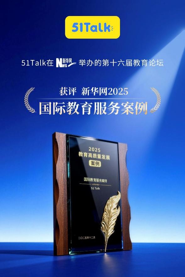 第十六届新华网教育论坛近日在京举办,本届论坛以“凝聚时代智慧 引领教育创新”为主题,汇聚了教育部相关司局领导、全国知名高校代表、中小学校负责人及教育领域专家学者等近500人参加。会上,51Talk凭借其创新的教育出海实践,荣获“国际教育服务案例”殊荣。作为在线教育出海先驱者与领导者,51Talk形成了从语言教学到文化互鉴的完整生态,为中国教育出海服务走向世界提供了可复制、可推广的系统性范本。