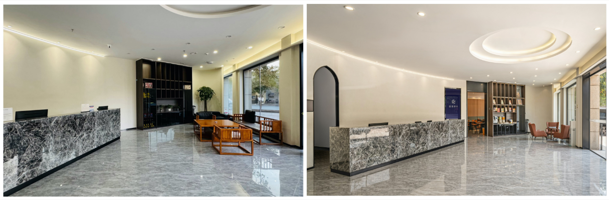 图:星程敦煌沙洲夜市酒店大堂改造前后对比