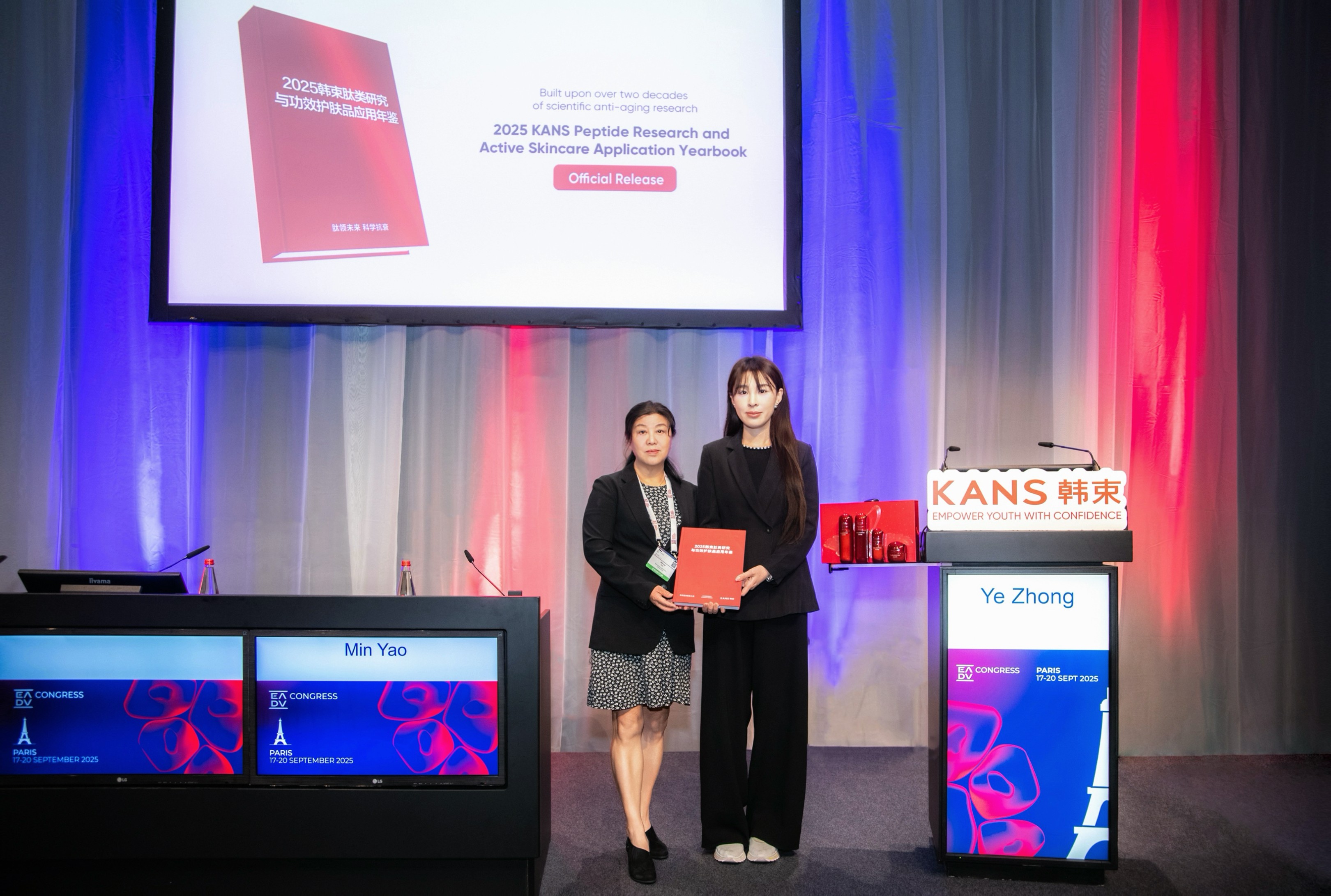 除了演讲,上美股份还在本届欧皮会上正式发布了《2025韩束肽类研究与功效护肤品应用年鉴》,并由上美股份高级副总裁宋洋女士和韩束转化医学基金委员会主席姚敏教授对韩束多肽红宝书进行了详细介绍。
