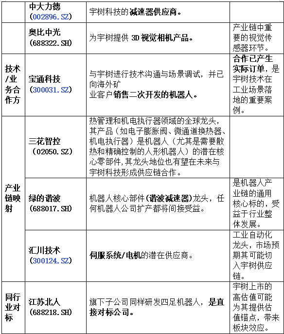 资本市场对宇树科技的关注,并不仅仅停留在单一公司的成长性上,而在于其有望成为人形机器人赛道的估值锚。一旦宇树科技成功上市,其市值水平、估值方式和交易活跃度,可能会反向影响市场对整个产业链和相关投资标的的定价逻辑。这正是“宇树科技概念股”产生的核心背景。
