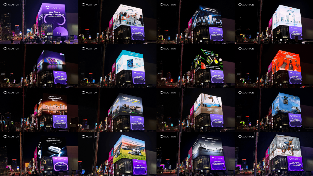 2026 年 1 月 6 日,即CES 展会首日,Xcotton小棉花携Unitree、Dreame、Yarbo、AWOL Vision、Creality、DeerRun、GEEKOM、Huion、Lymow、Merach、MINISFORUM、SwitchBot、Wybot、XbotGo、Tuttio等一众出海品牌,集体亮相拉斯维加斯户外广告大屏。