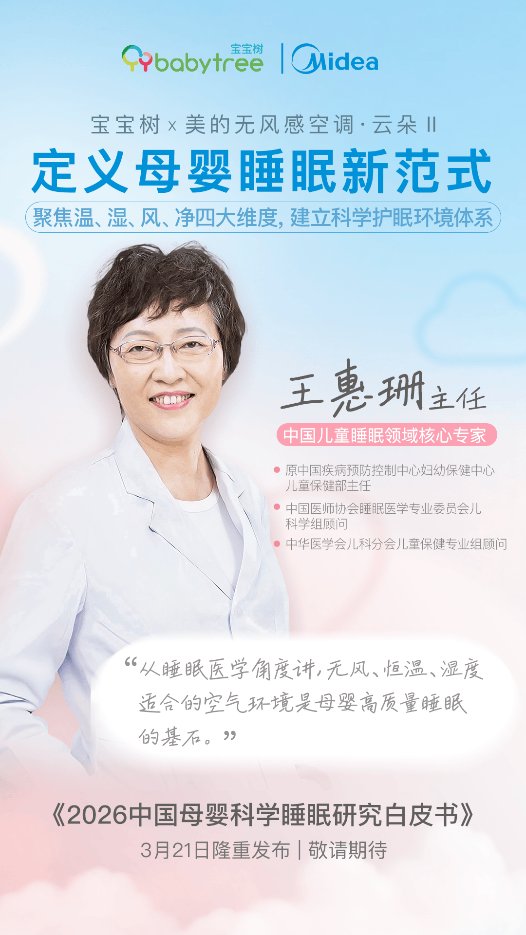 作为本次合作的延续,宝宝树与美的空调将于3月21日世界睡眠日联合发布《2026 中国母婴科学睡眠研究白皮书》。该白皮书将深度融合宝宝树的用户洞察数据与美的空调的技术研究,系统梳理中国母婴人群的睡眠现状,科学分析包括物理环境在内的多重影响因素,并提出具有实操性的环境改善建议。它不仅旨在为行业提供一份权威、科学的研发与产品定义参考,更希望为千万中国家庭提供一份专业的睡眠环境优化指南。