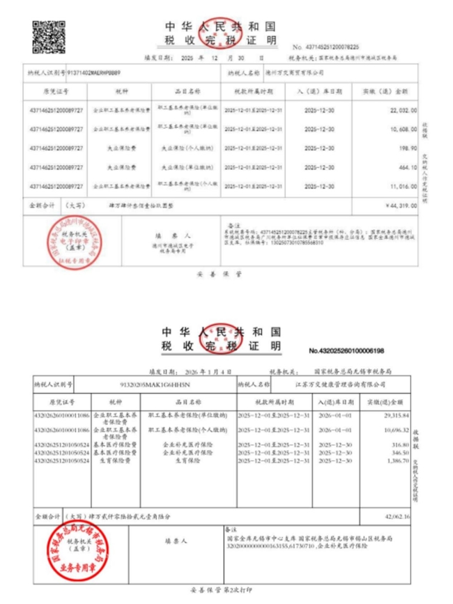 保障员工合法权益是企业履行社会责任的基础。万交所严格执行国家相关制度,确保全国多地分公司的员工社保每月按时、足额缴纳。截至12月,包括山东德州、江苏无锡、四川攀枝花、河南开封、湖北武汉、山东济南及南京高淳、句容等在内的各地区分公司,均已顺利完成当月社保缴纳工作,实现了对员工基本权益的持续、稳定保障。这项基础工作的常态化落实,体现了万交所对内部伙伴的重视与尊重。
